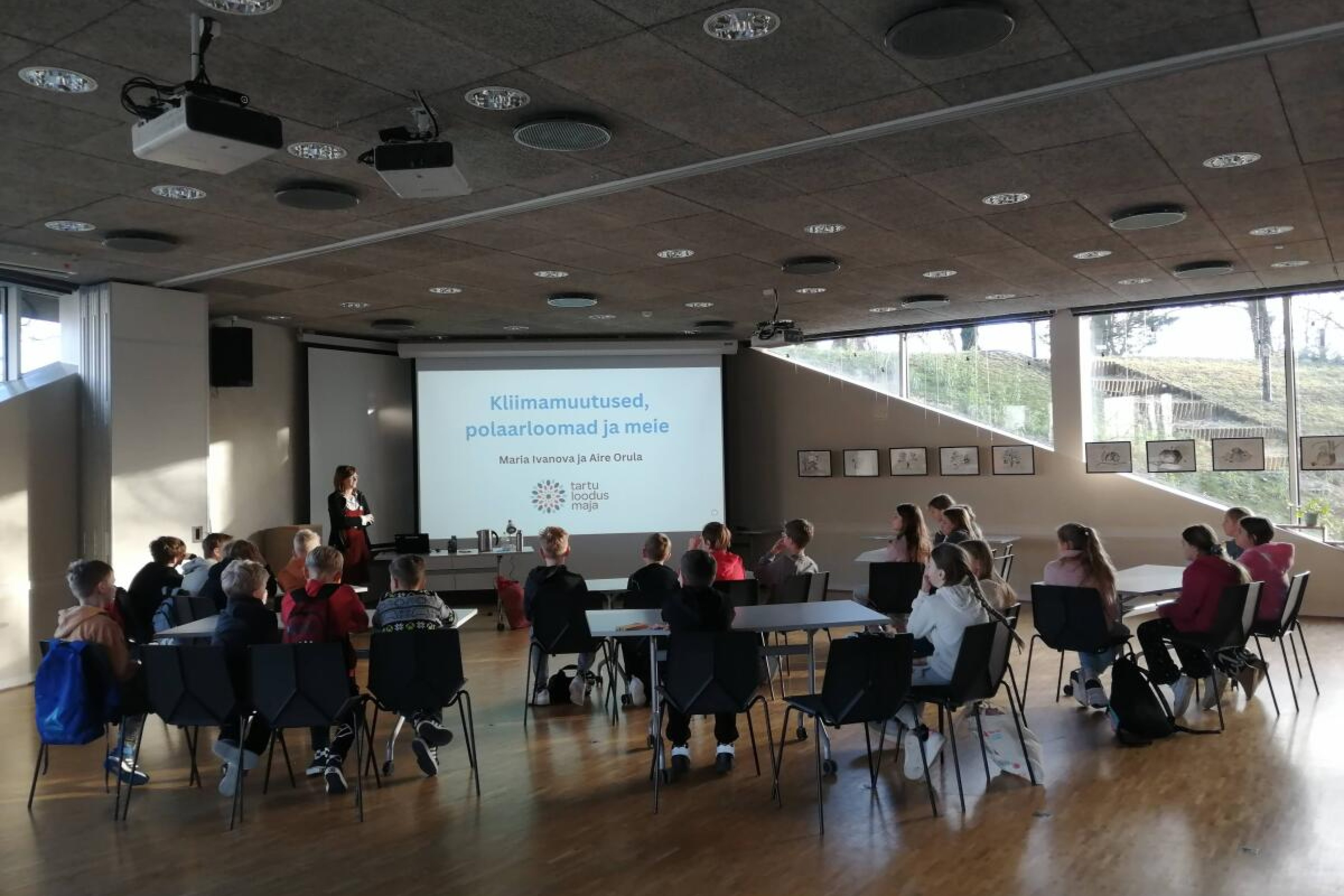 18. novembril 2024 sõitsimegi rõõmsalt auhinda kätte saama ning Tartu loodusmaja uudistama. Ja uudistada oli palju: infotahvlid seintel, keskkonateemalised mängud ühiselt mängimiseks, kalad akvaariumis. Tähtsaim oli siiski osalemine õppeprogrammis "Polaarloomad muutuvas kliimas", milles kohta saab lähemalt lugeda siit https://www.tartuloodusmaja.ee/teenused/polaarloomadlink opens on new page