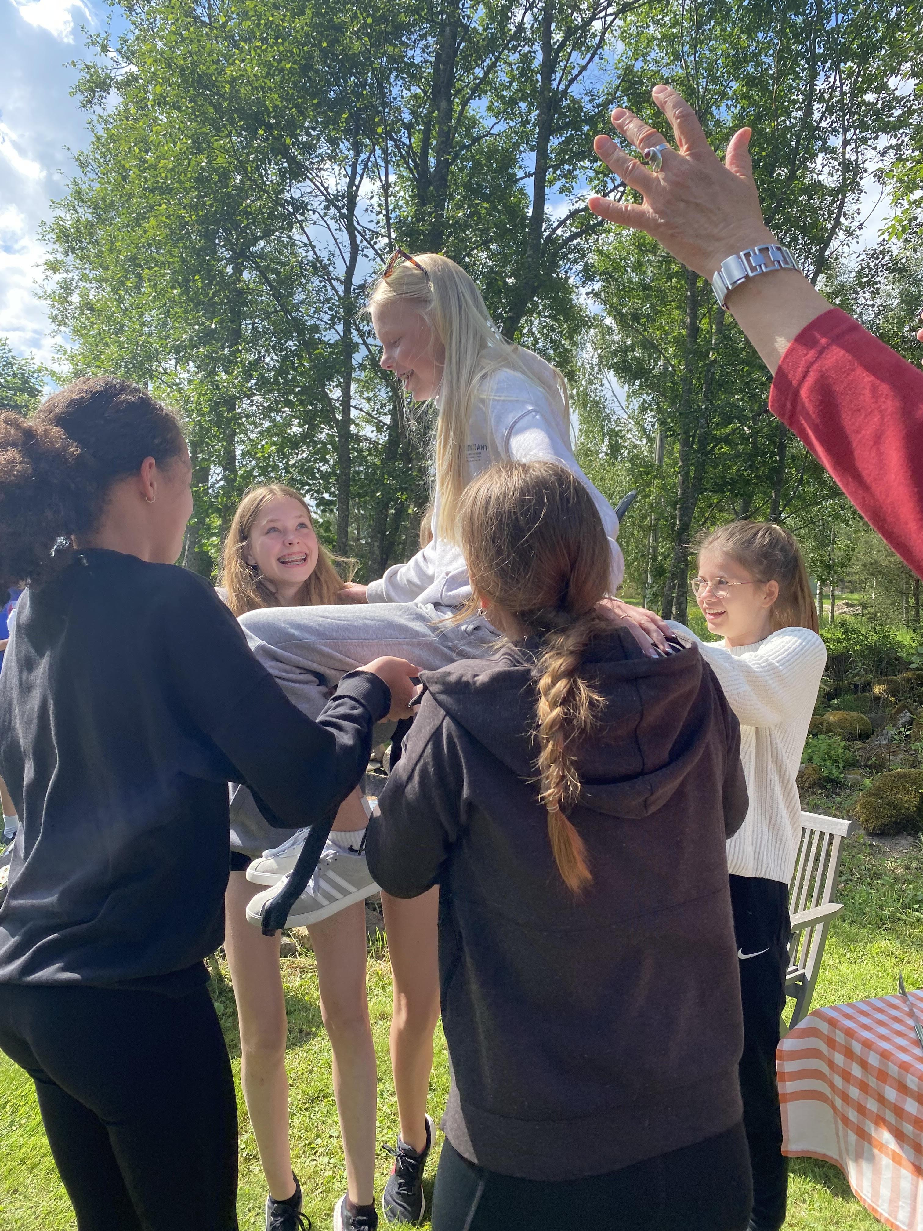 Seekord siis jalgrattal sõit Mäekülla, külla klassijuhatajale. Kohale jõudes olime küll veidi väsinud, aga ilus ilm ja mõnus koduõu andsid uut energiat. Kõigepealt puhkus ja eine murul. Söögi valmistasime, meenutades taani õpilaste traditsioonilist einet, wrap grillvorsti ja salativalikuga. Soovisime lauldes õnne suve sünnipäevalastele, tõstes neid 14 korda õhku. Tegevust leidus kõigile. Mängisime koos palli ning Taani sõpradelt õpitud mänge.