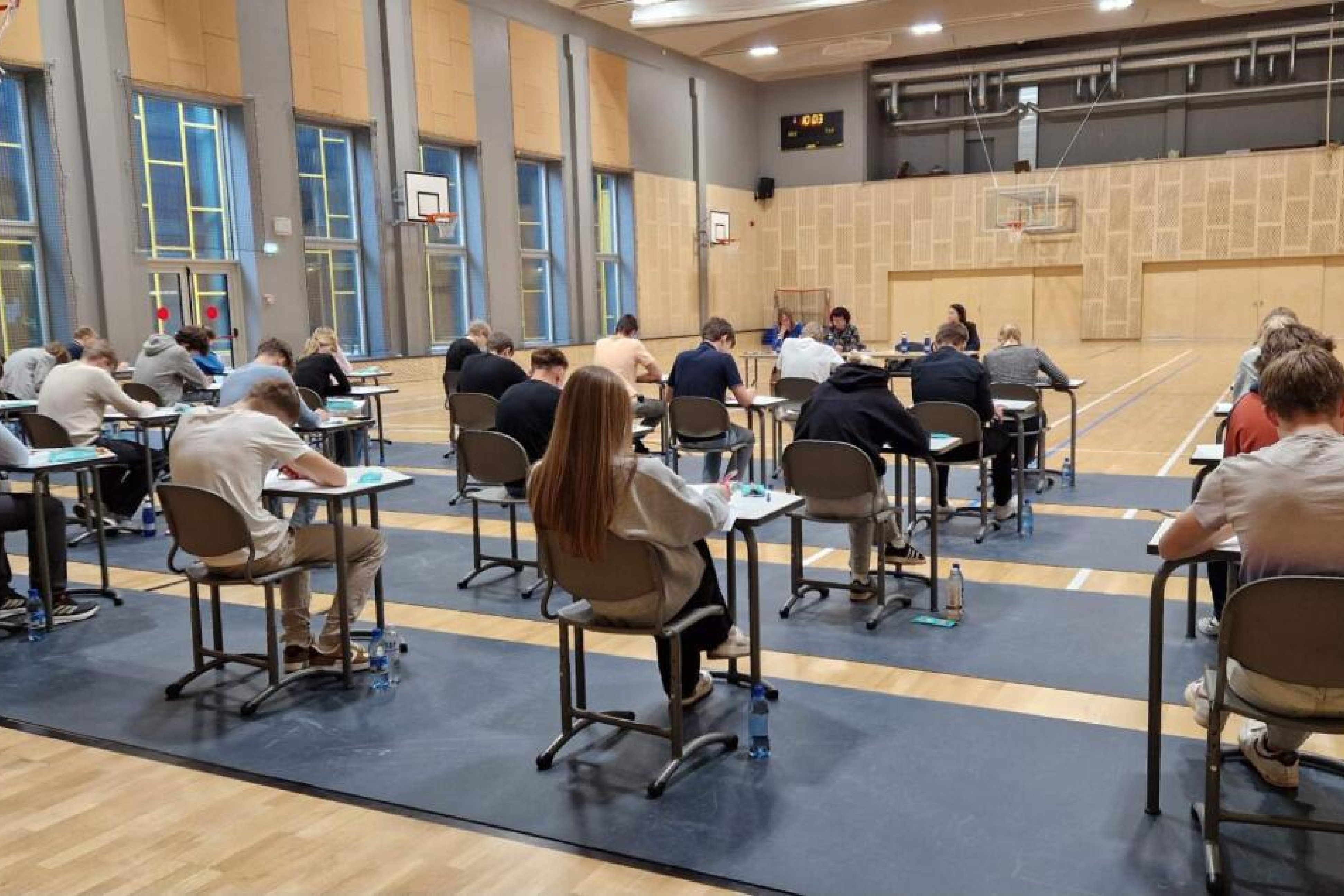 Täna istus 40 noort laudade taha, et lahendada põhikooli eesti keele lõpueksami ülesanded. Õpilastel tuli lugeda katkend Anu Raua raamatust "Hea karjane. Jutte loomadest" ja veebitekst "Kotkad Eestis" Kotkaklubi kodulehelt ning lahendada nende põhjal ülesanded. Kirjandis tuli arutleda selle üle, kes on tänapäeva noorte eeskujud. Õigekeelsusülesannetes kontrolliti hääliku- ja häälikuühendi õigekirja, kirjavahemärgistamist, kokku- ja lahkukirjutamist võõrnimede käänamist.