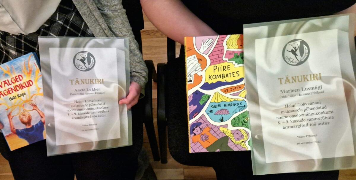Helmi Tohvelmani nimelise andeka maakooliõpilase preemia kõrval said auhinnatud ka need, kes osalesid kirjandikonkursil. Meie koolist olid 8.-9. klasside arvestuses parimate hulgas 9.c klassi õpilane Marleen Lusmägi (juhendaja Eve Klävin) ja 8.b klassi õpilane Anete Lukken (juhendaja Anne Kivimäe). Mõlemad kirjutasid teemal "Ühe suve akvarellid".