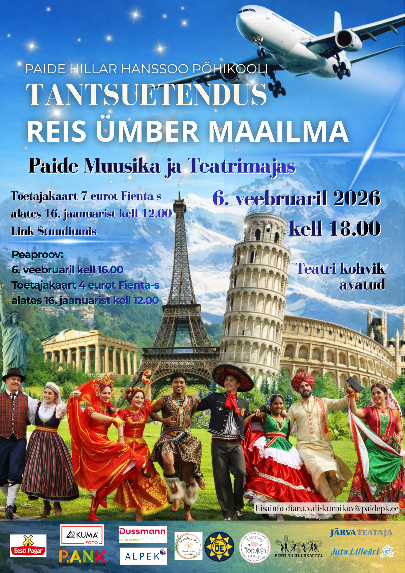 Paide Hillar Hanssoo Põhikooli traditsiooniline tantsuetendus kannab 2026. aastal pealkirja „Reis ümber maailma“ ja toob lavale kogu koolipere – õpilased, õpetajad, vilistlased ning lapsevanemad. Tegemist on sündmusega, mis ühendab põlvkondi ja loob erilise ühtekuuluvustunde nii laval kui ka saalis.