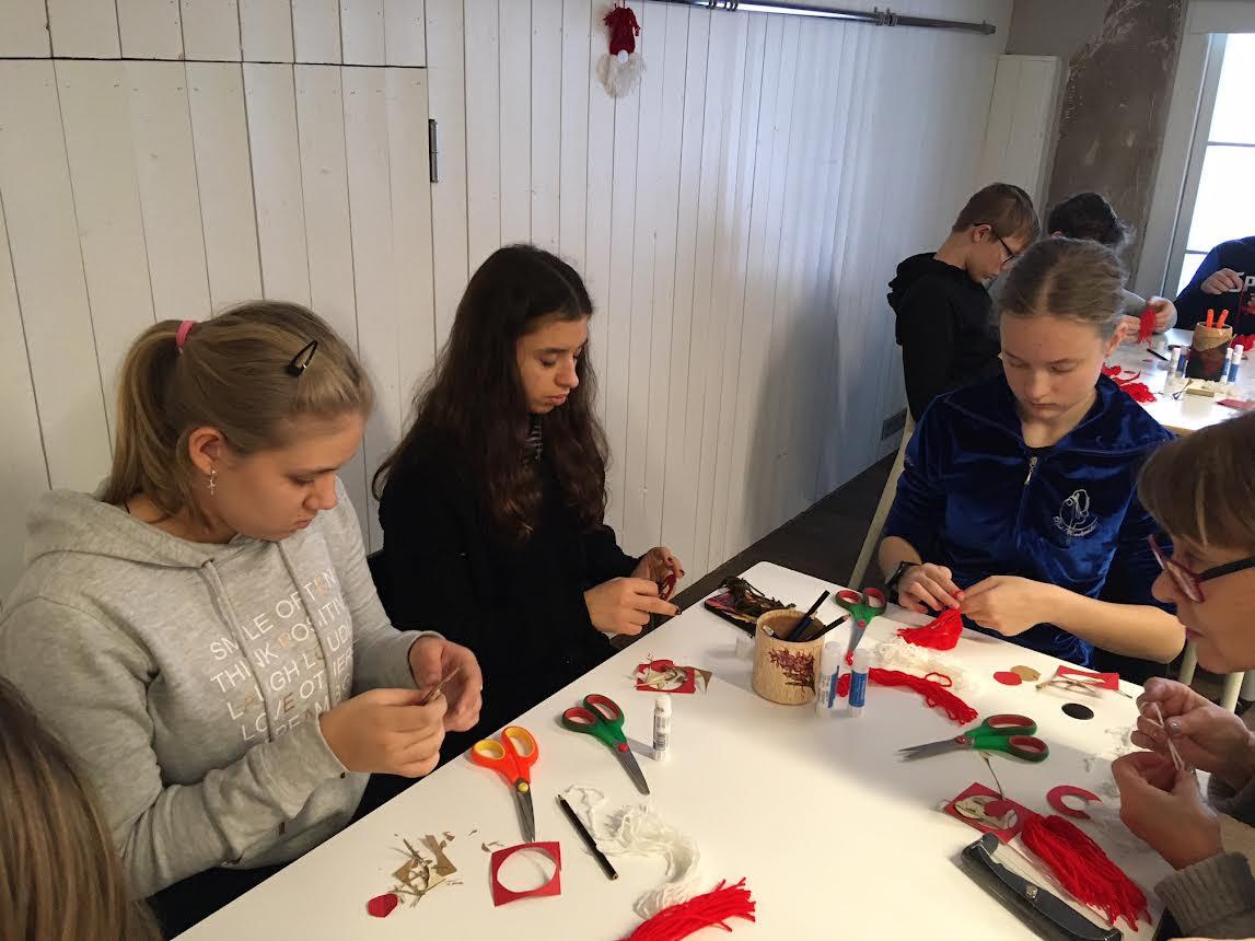 Kui koolitund läbi sai, vaatasime majas ringi ja kaunistasime piparkooke. Meilt küsiti piparkoogi ajaloo kohta küsimusi ja kui piparkoogid valmis olid, meisterdasime koos päkapikke. Pärast meisterdamist läksime aita mänge mängima. Juhendaja rääkis vanadest kommetest. Mängisime kingsepal silma välja torkamist, vedasime väigikaigast ja pugesime looga alt läbi.